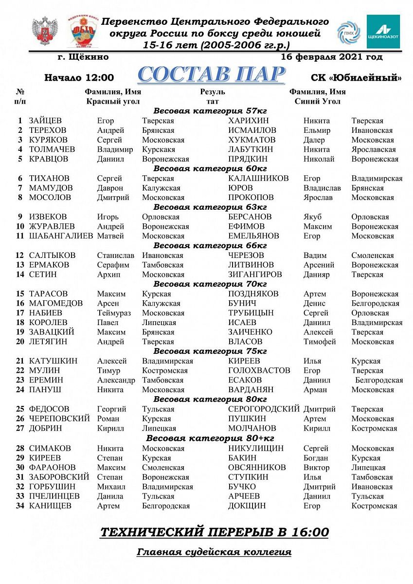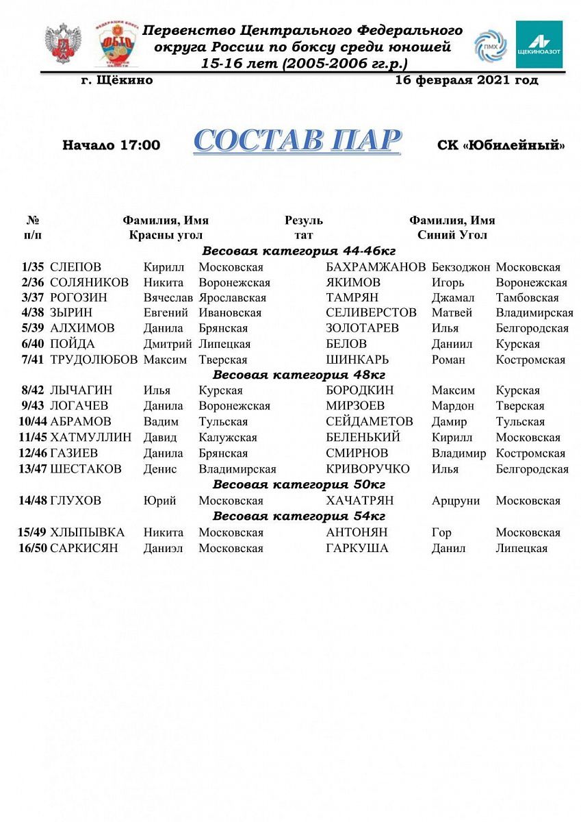Первенство ЦФО по боксу среди юношей 15-16 лет. Щекино. День 1