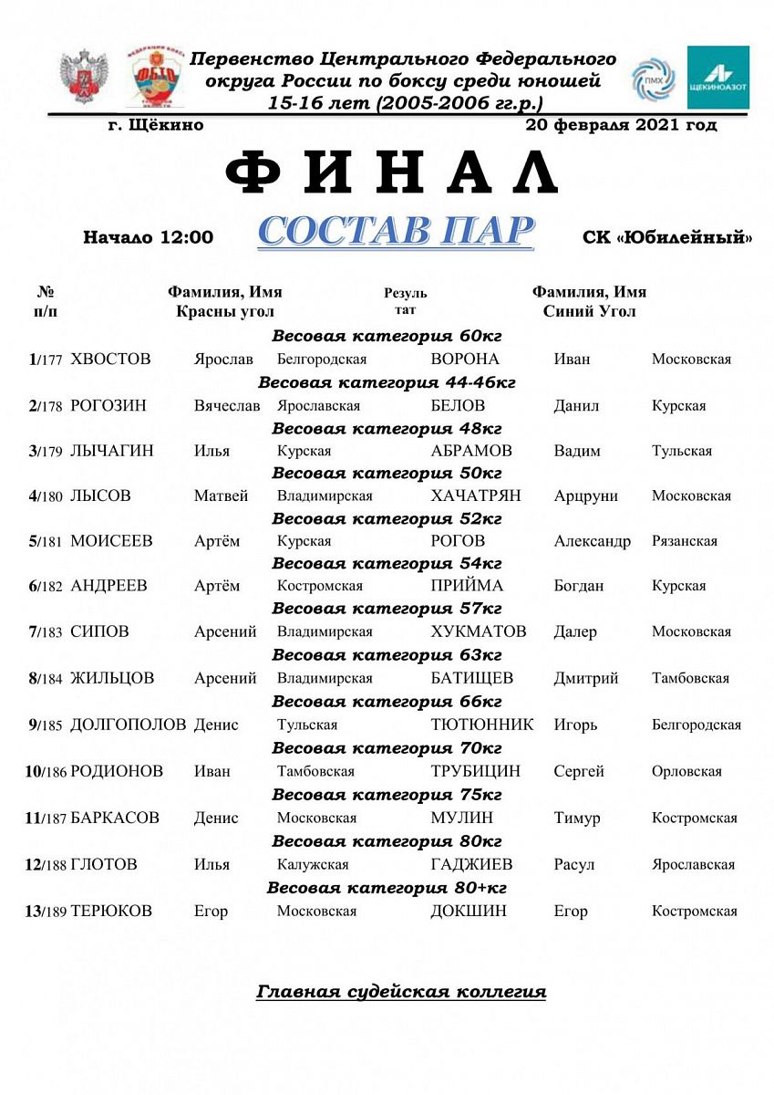 Первенство ЦФО по боксу среди юношей 15-16 лет. Щекино. ФИНАЛЫ