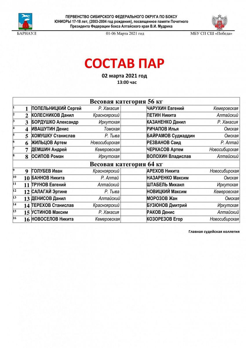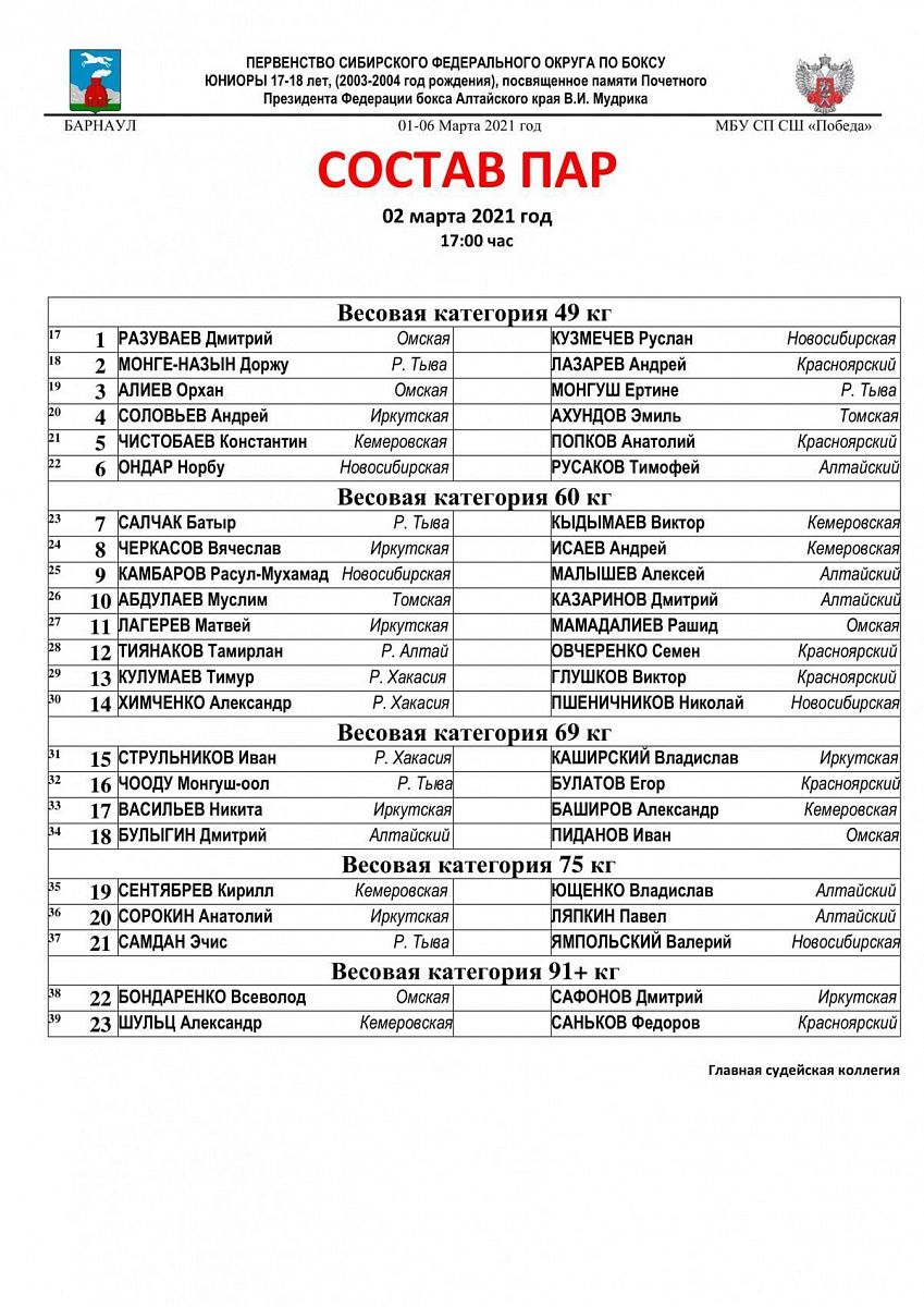 Первенство СФО по боксу памяти В.И. Мурдика среди юниоров 17-18 лет. Барнаул. День 1