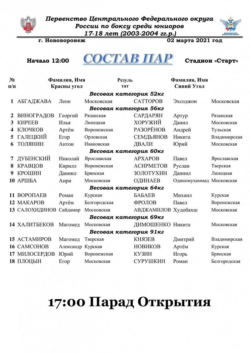 Первенство ЦФО по боксу среди юниоров 17-18 лет. Новоронеж. День 1