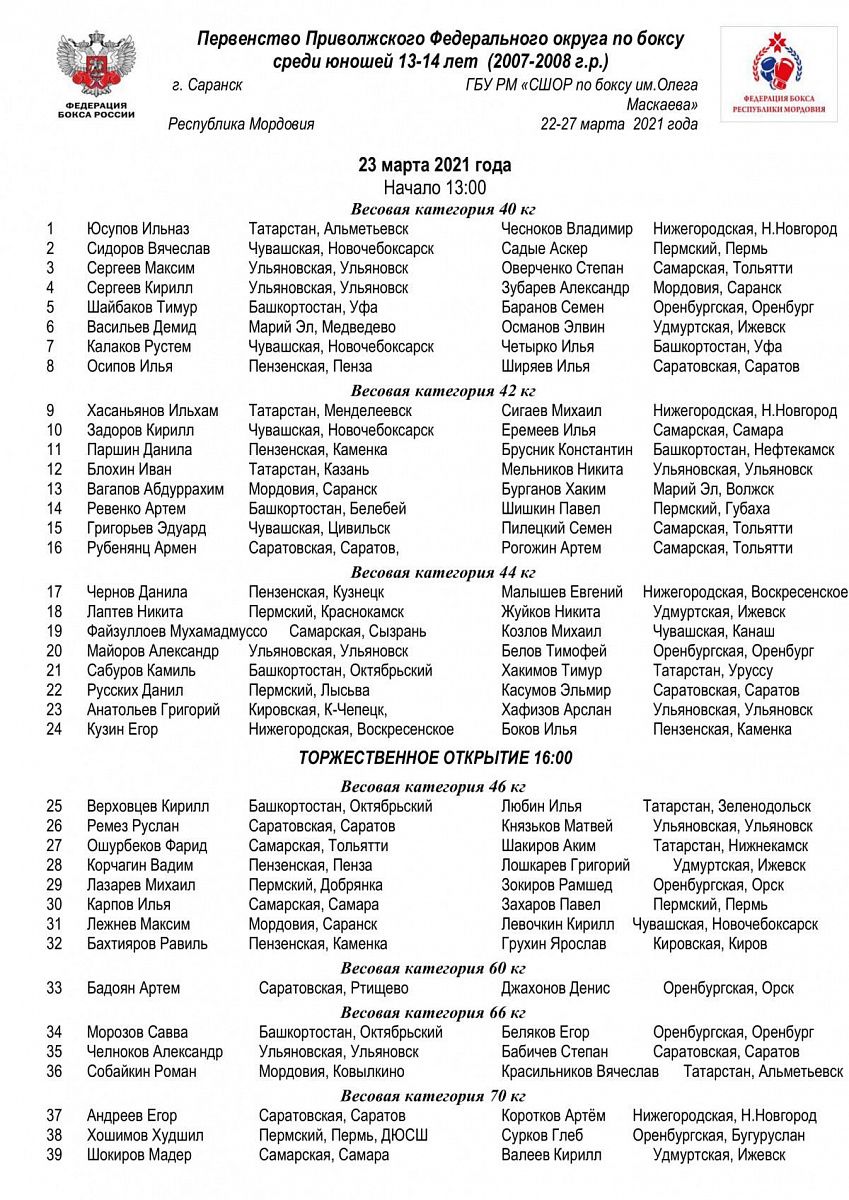 Первенство ПФО среди юношей 13-14 лет. Саранск. День 1