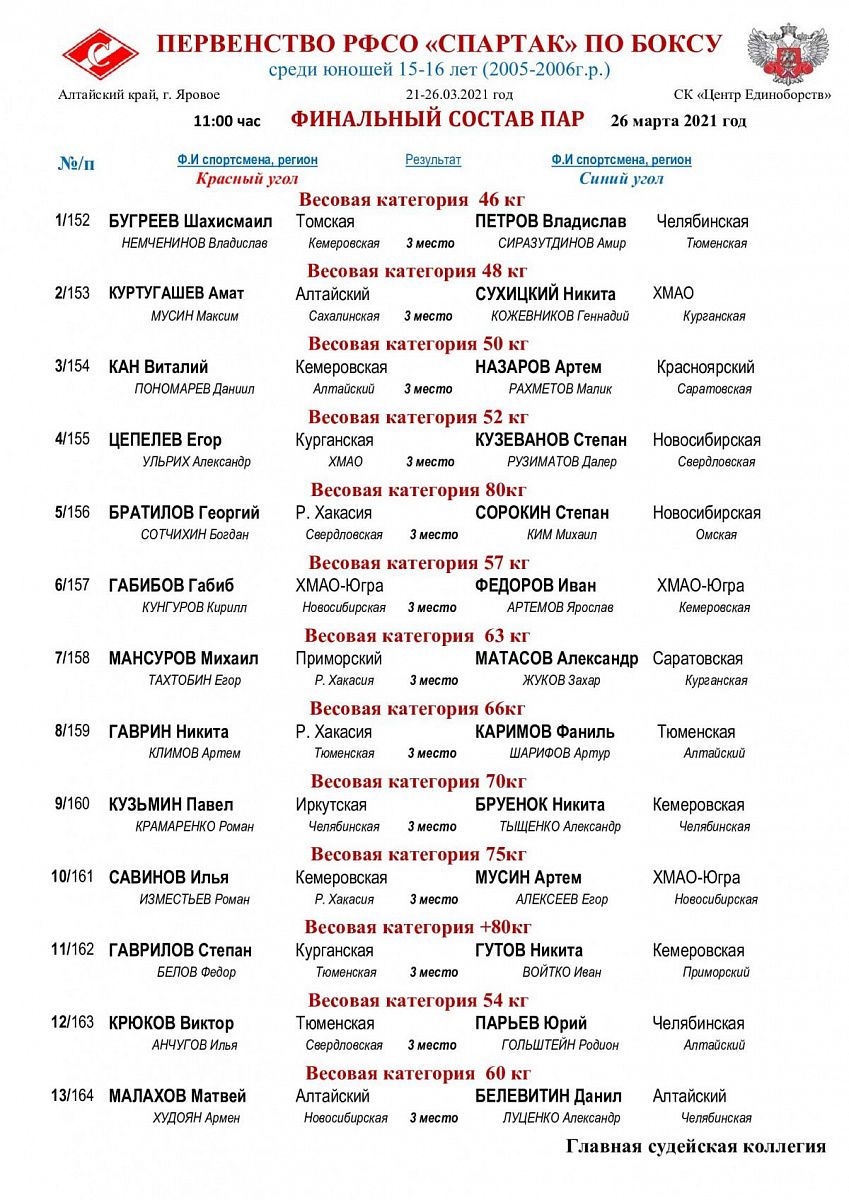 Первенство РФСО "Спартак" по боксу среди юношей 15-16 лет. Яровое. ФИНАЛЫ