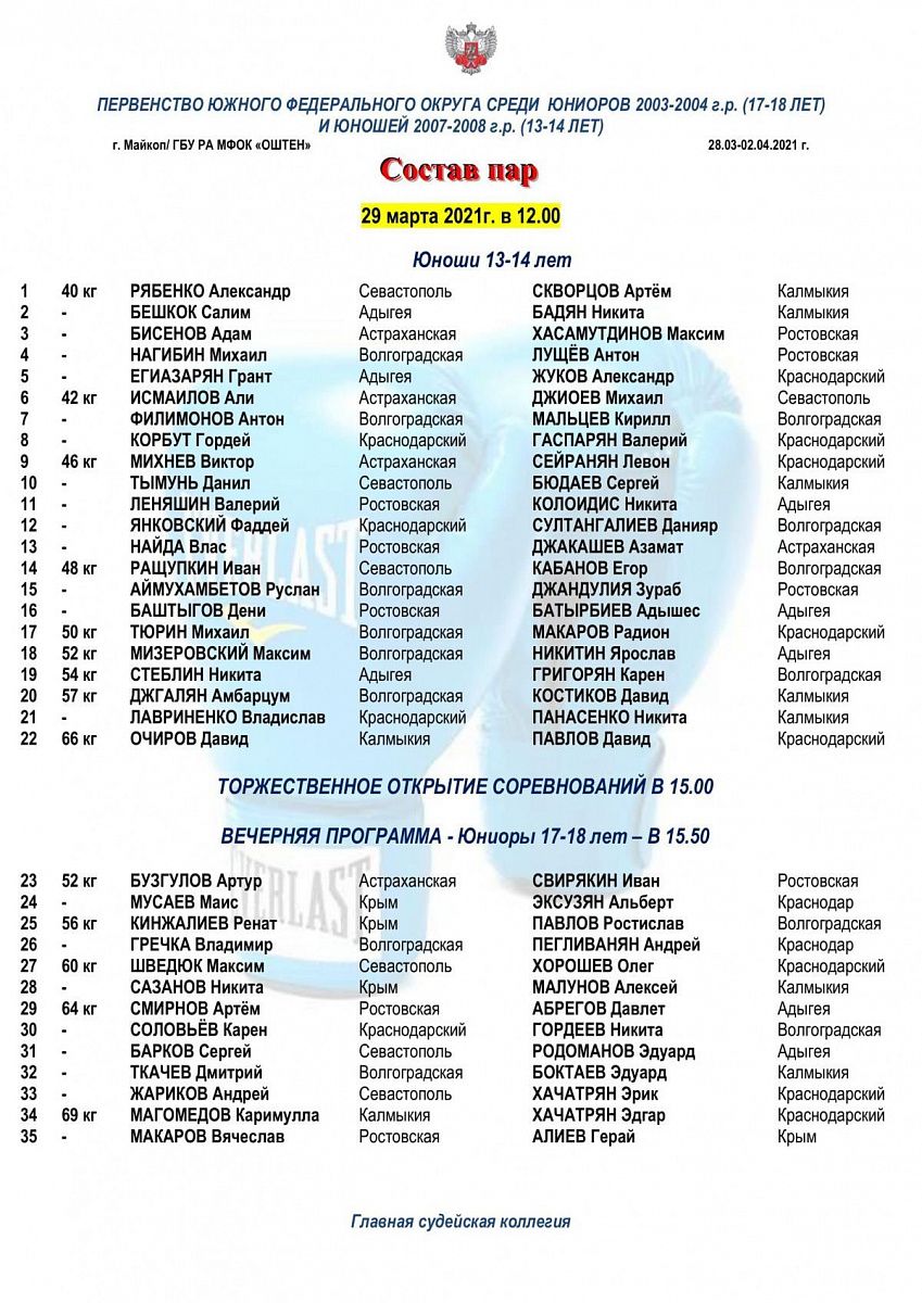Первенство ЮФО по боксу юниоров 17-18 лет и юношей 13-14 лет. Майкоп. День 1