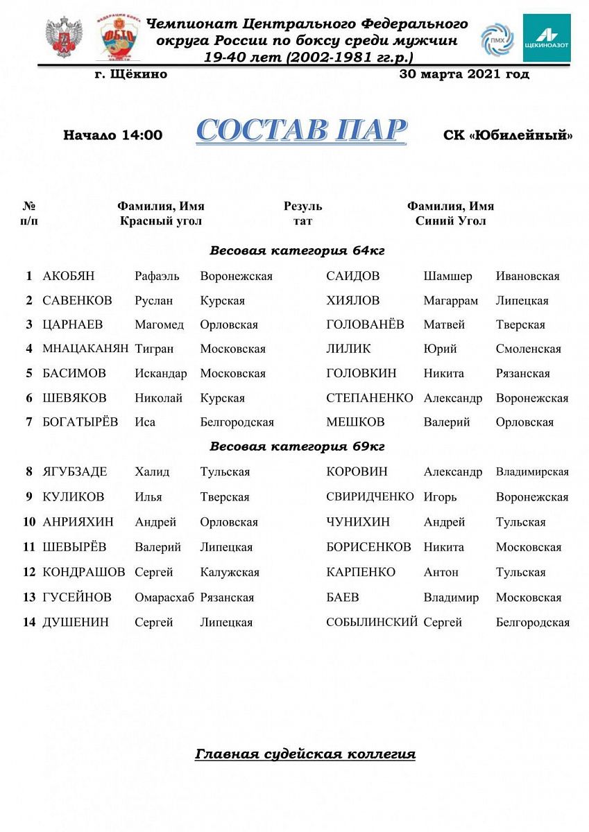 Чемпионат ЦФО по боксу среди мужчин. Щекино. День 1