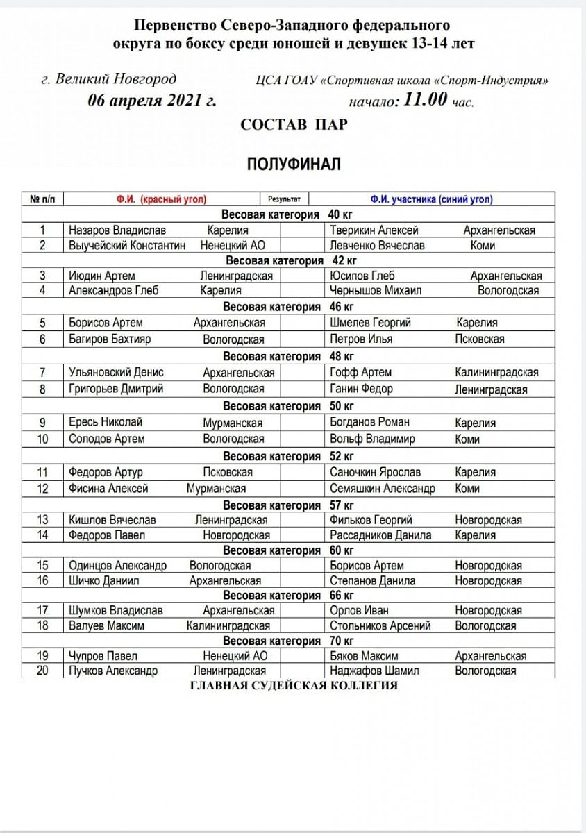 Первенство СЗФО по боксу среди юношей и девушек 13-14 лет. Великий Новгород. ПОЛУФИНАЛЫ
