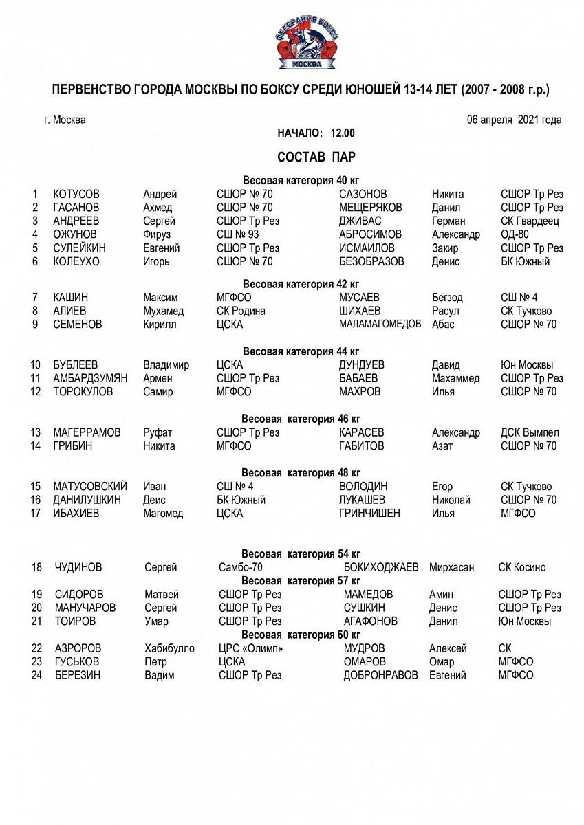 Первенство Москвы по боксу среди юношей 13-14 лет. Москва. День 1