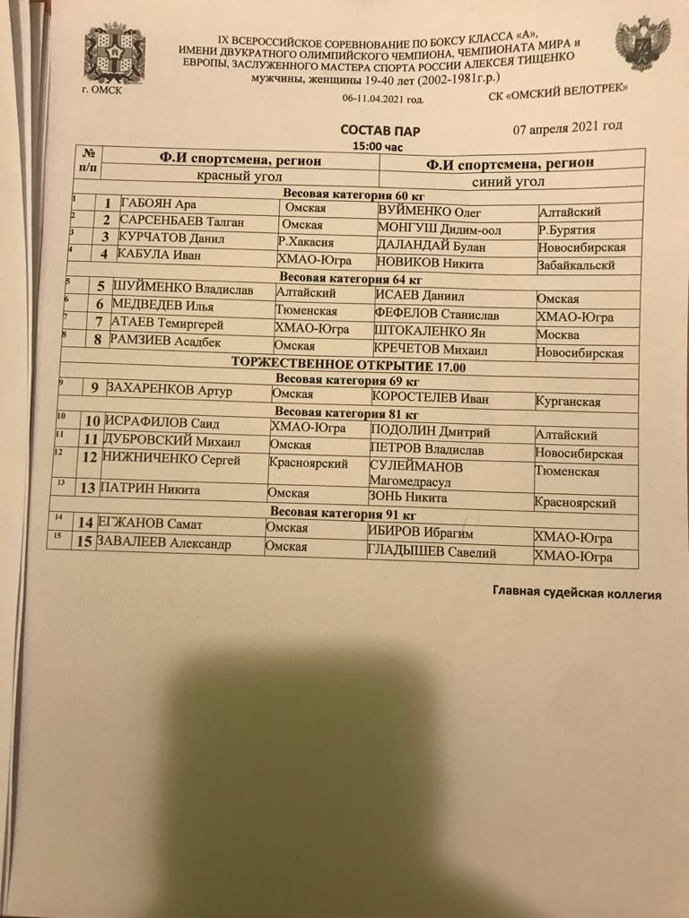 Главная / Архив новостей / ВС по боксу класса "А" имени двукратного ОЧ, ЧМ и ЧЕ, ЗМС России Алексея Тищенко. Омск. День 1