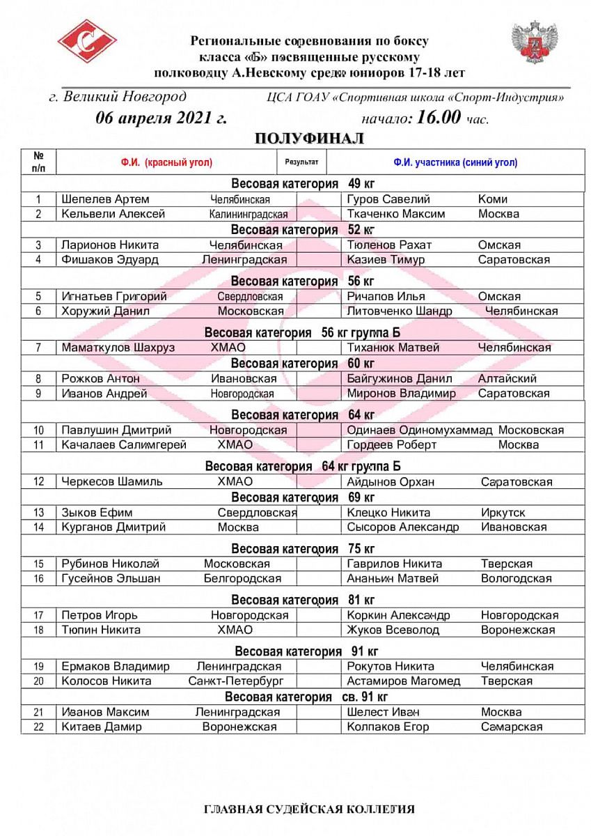 Региональные соревнования по боксу класса "Б" посвященные А.Невскому среди юниоров 17-18 лет. Великий Новгород. ПОЛУФИНАЛЫ