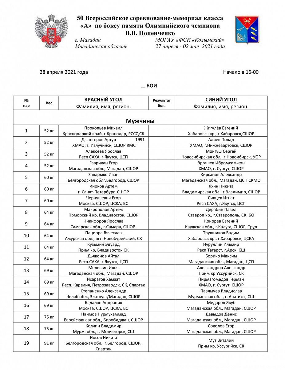 Главная / Архив новостей / ВС по боксу класса "А" памяти Олимпийского чемпиона В. В. Попенченко. Магадан. День 1
