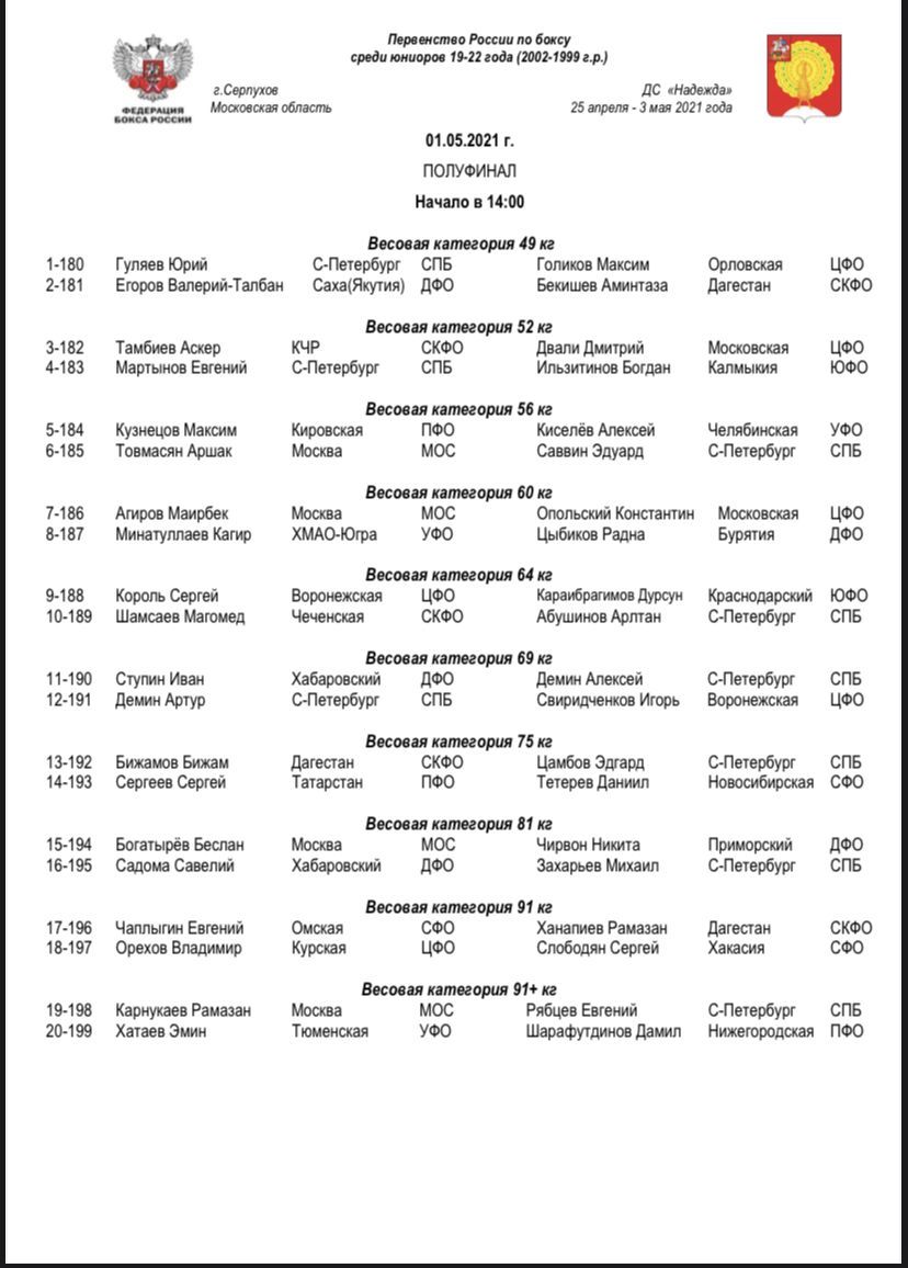 Первенство России по боксу среди юниоров 19-22 года. Серпухов. ПОЛУФИНАЛЫ