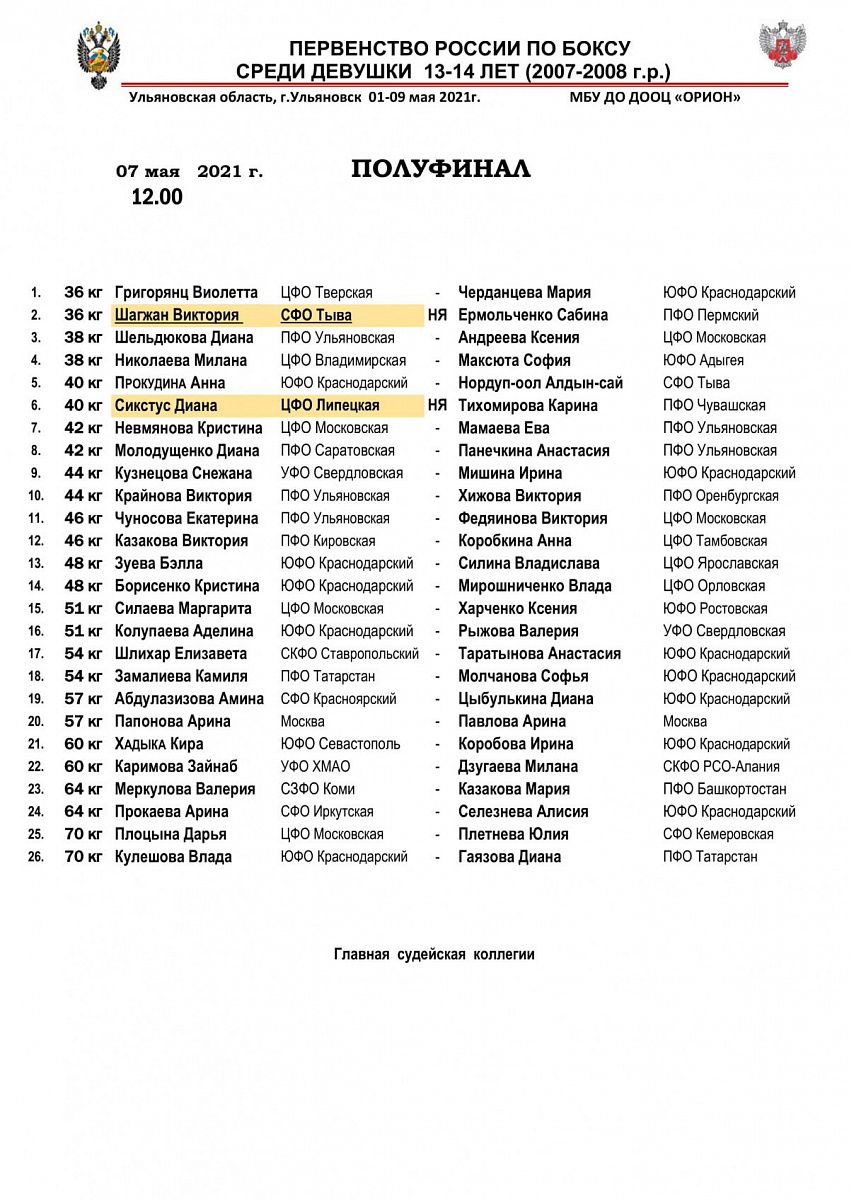 Первенство России по боксу среди девушек (13-14 лет). Ульяновск. ПОЛУФИНАЛЫ