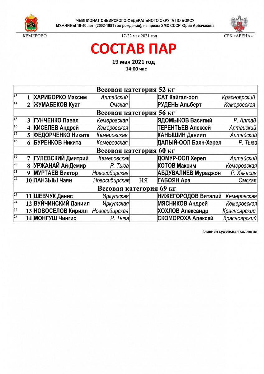 Главная / Архив новостей / Чемпионат СФО по боксу среди мужчин 19-40 лет на призы ЗМС СССР Юрия Арбачакова. Кемерово. День 2