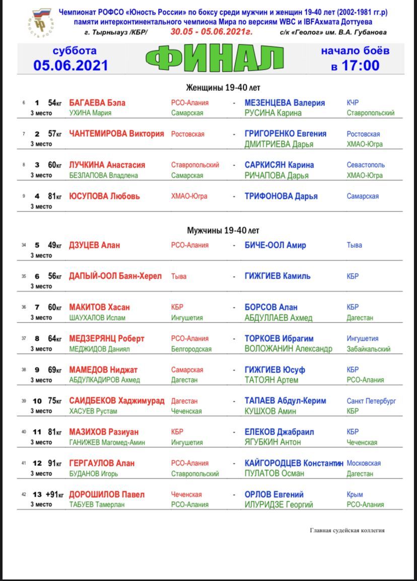 Чемпионат РОФСО «Юность России» по боксу среди мужчин и женщин 19-40 лет. Тырныауз. ФИНАЛЫ