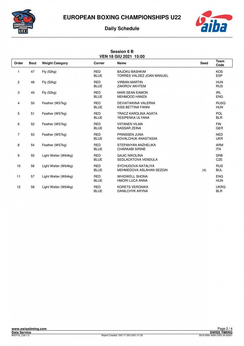 Первенство Европы по боксу среди юниоров и юниорок 19-23 года. Италия. День 2
