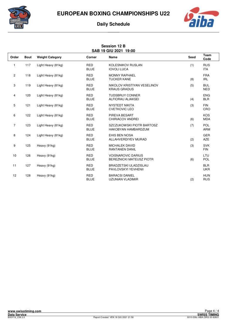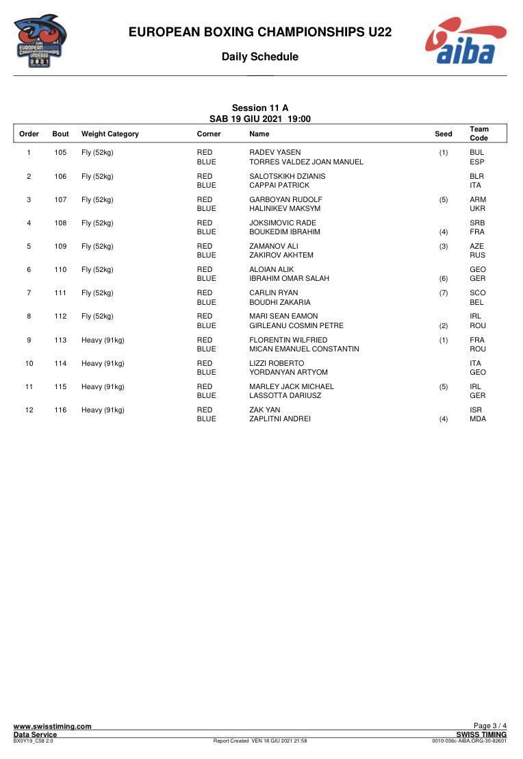 Первенство Европы по боксу среди юниоров и юниорок 19-23 года. Италия. День 3