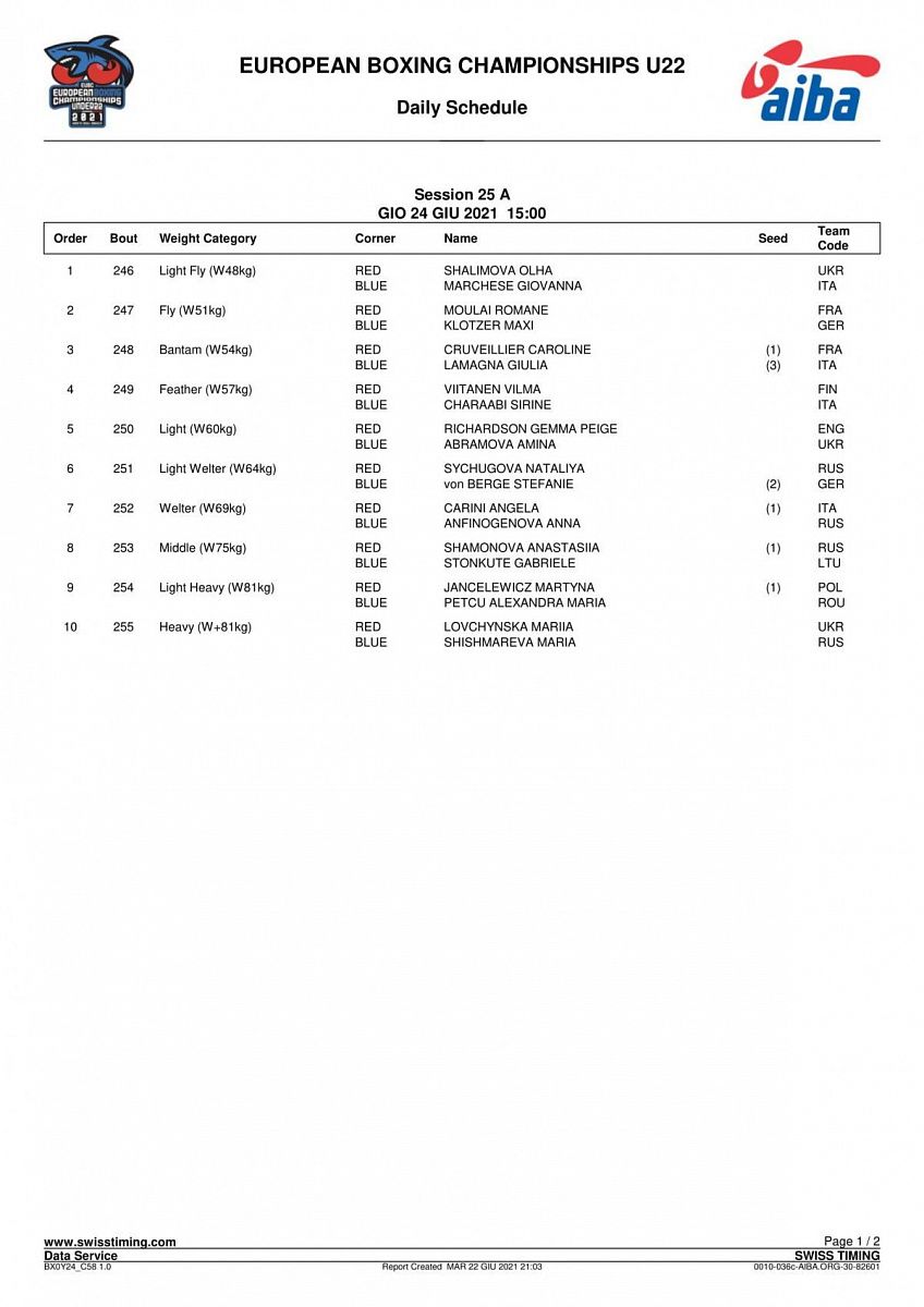 Первенство Европы по боксу среди юниоров и юниорок 19-23 года. Италия. ФИНАЛЫ
