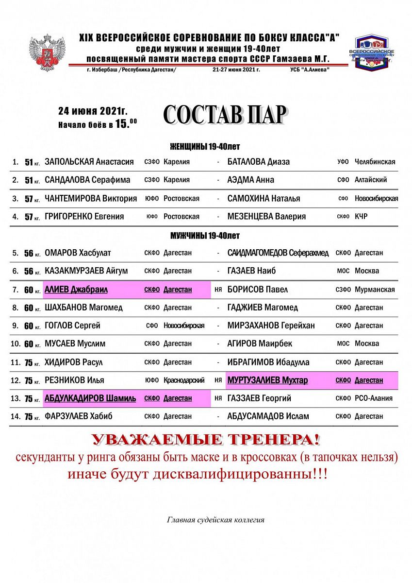 Главная / Архив новостей / ВС по боксу класса "А" памяти Гамзаева М.Г. среди мужчин и женщин. Избербаш. День 3