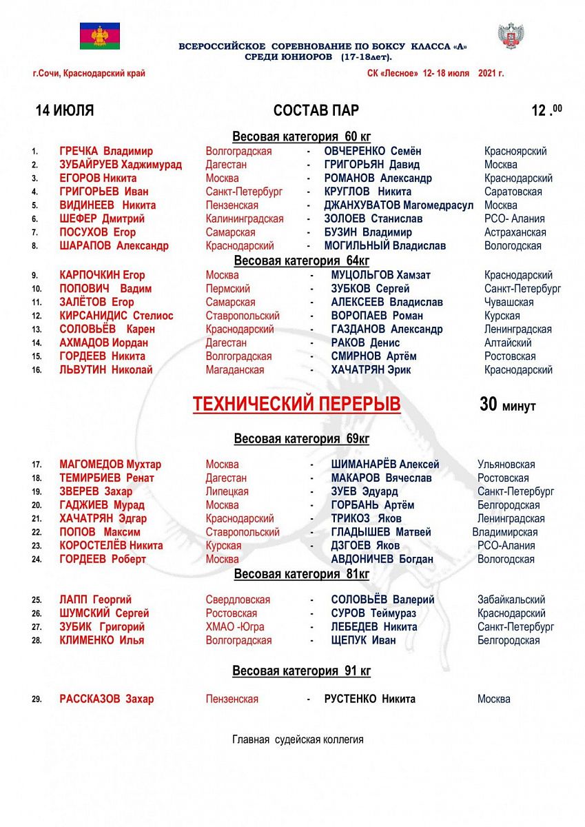 Главная / Архив новостей / ВС по боксу класса "А" среди юниоров 17-18 лет памяти В.И. Севастьянова. Сочи. День 2