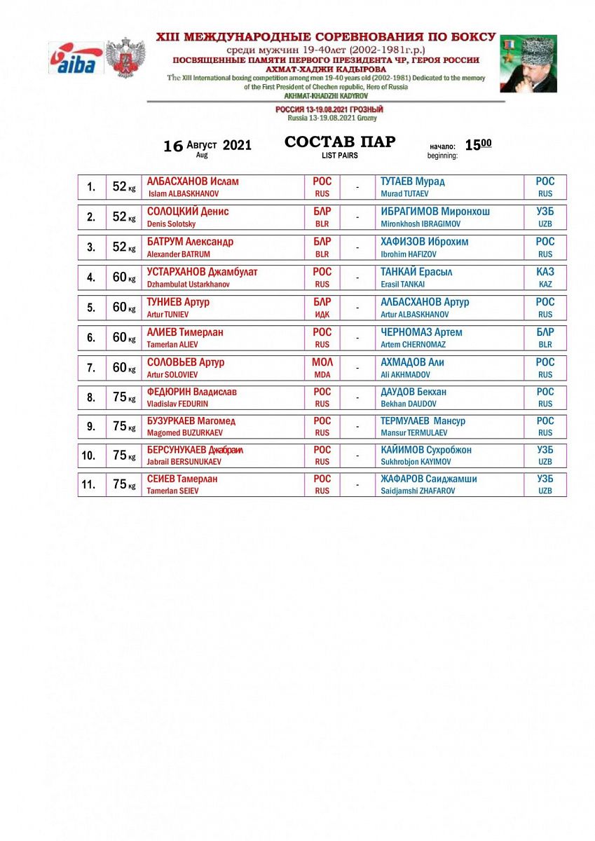 Главная / Архив новостей / XIII Международные соревнования по боксу памяти Хаджи Кадырова. Грозный. День 3