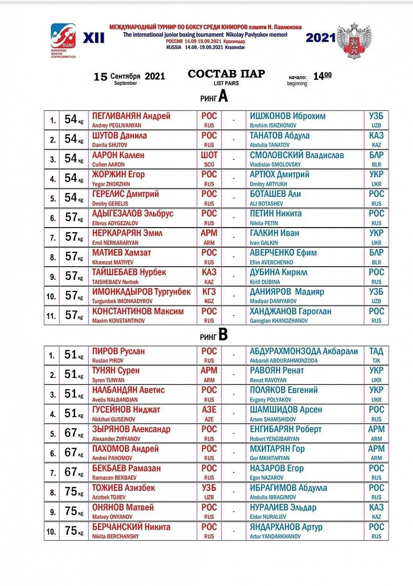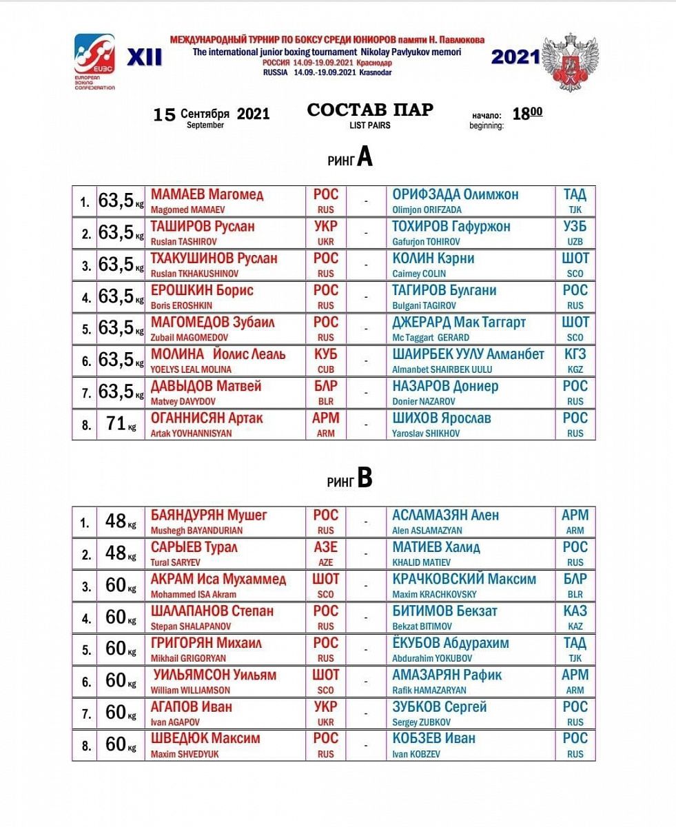 Международный турнир по боксу среди юниоров памяти Н. Павлюкова. Краснодар. День 1