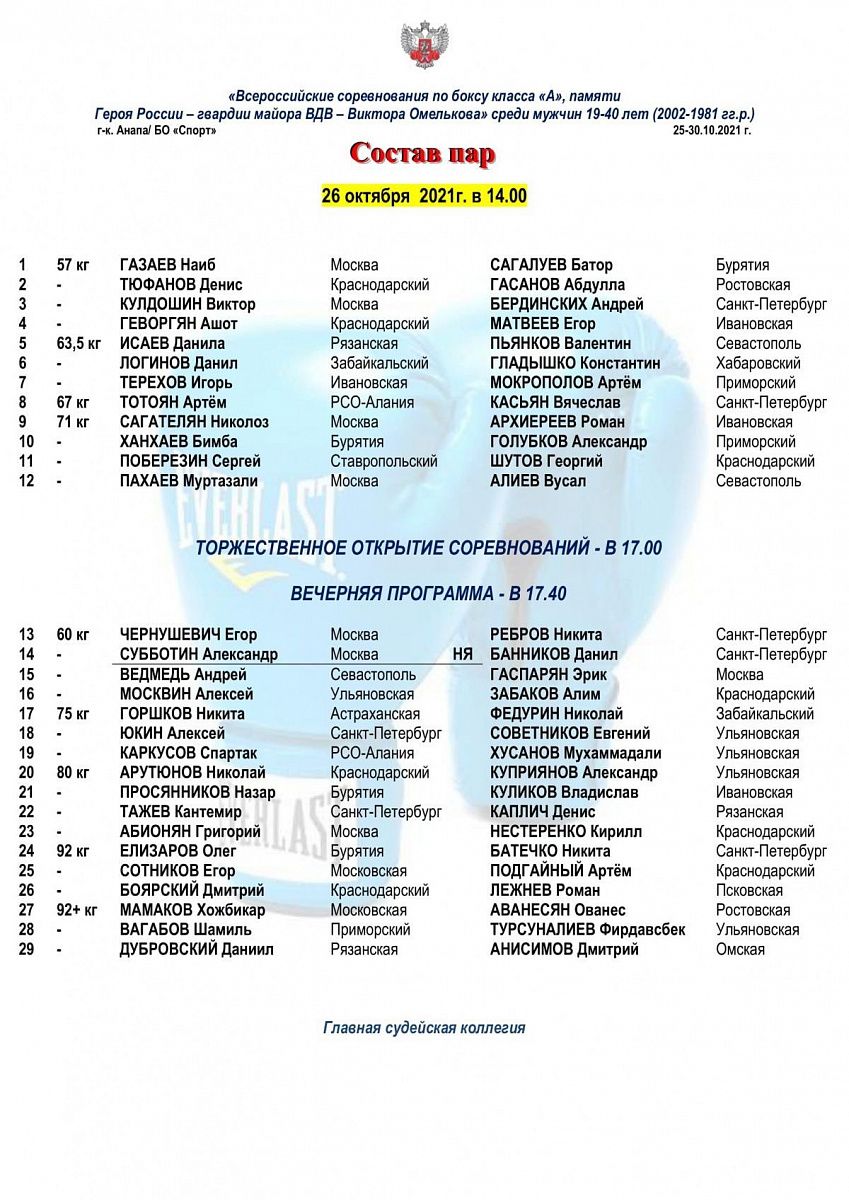 Главная / Архив новостей / ВС класса "А" по боксу среди мужчин памяти Героя России Виктора Омелькова. Анапа. День 1