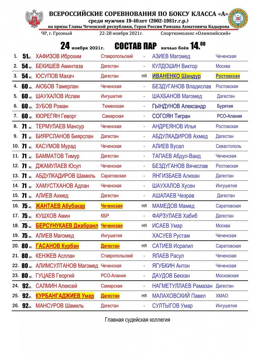 Главная / Архив новостей / ВС класса "А" по боксу на призы главы чеченской Республики Рамзана Кадырова. Грозный. День 2
