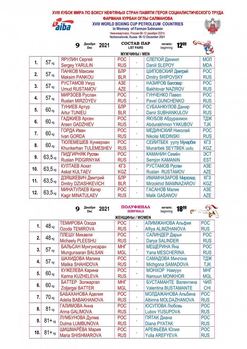 Главная / Архив новостей / Кубок мира по боксу нефтяных стран памяти Ф.К. Салманова. Нижневартовск. День 3