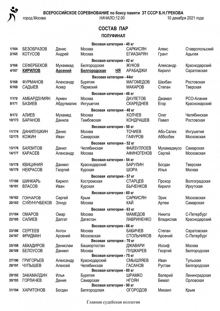 ВС по боксу памяти ЗТ СССР Б.Н. Грекова среди юношей 2008 г.р.. Москва. ПОЛУФИНАЛЫ