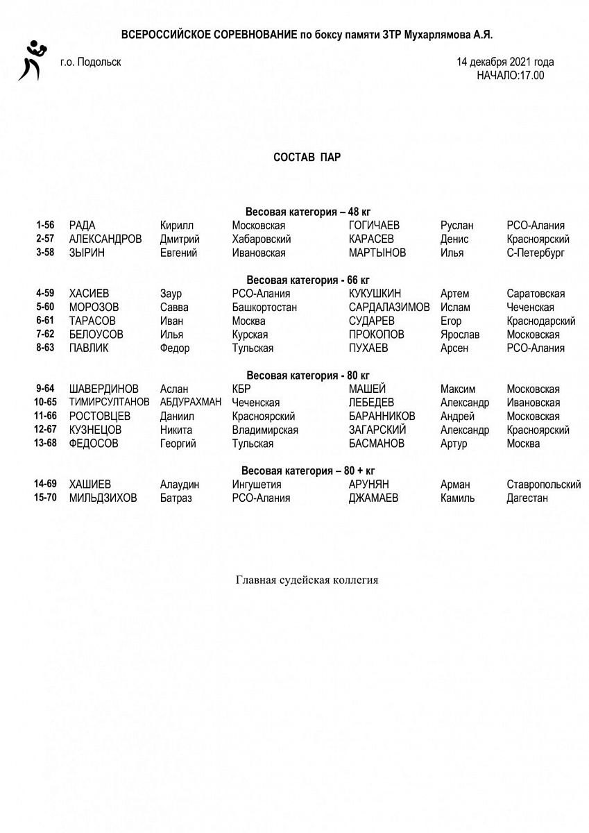 ВС по боксу среди юношей 14-15 лет памяти ЗТР А.Я. Мухарлямова. Подольск. День 2