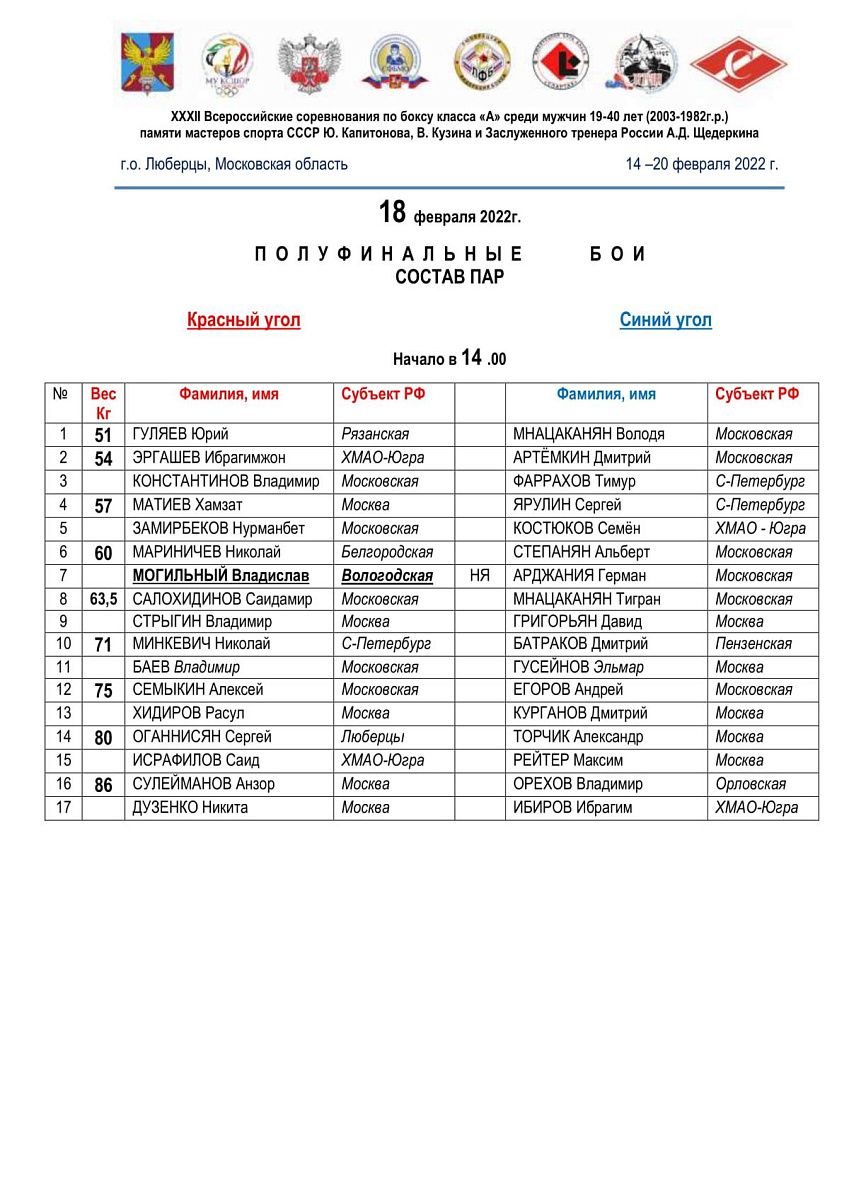 Главная / Архив новостей / ВС по боксу среди мужчин памяти МС Ю. Капитонова, В. Кузина и ЗТР А.Д. Щедеркина. Люберцы. День 4