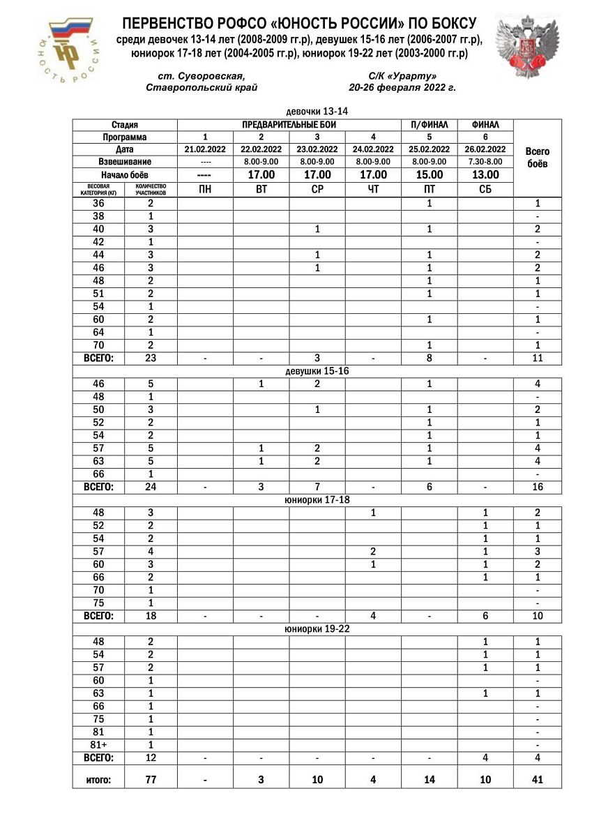 Главная / Архив новостей / Первенство "Юность России" по боксу среди юниорок , девушек, девочек и юношей. Суворовская. День 1