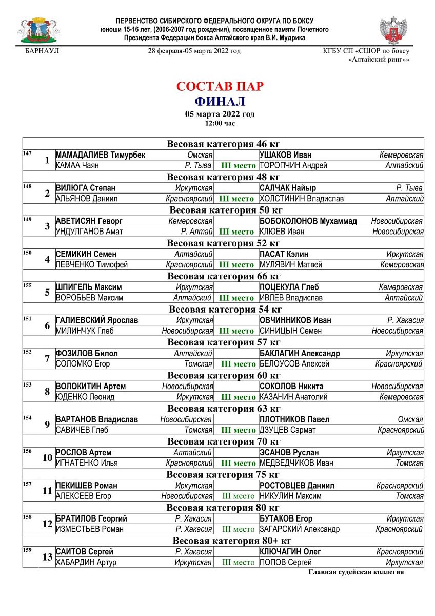 Первенство СФО по боксу среди юношей 15-16 лет. Барнаул. ФИНАЛЫ