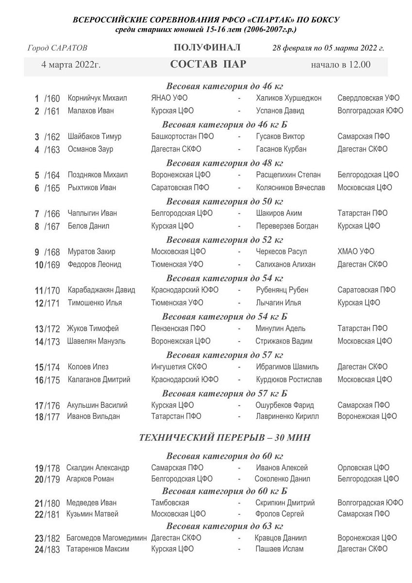 Первенство РФСО "Спартак" по боксу среди юношей 15-16 лет. Саратов. День 4