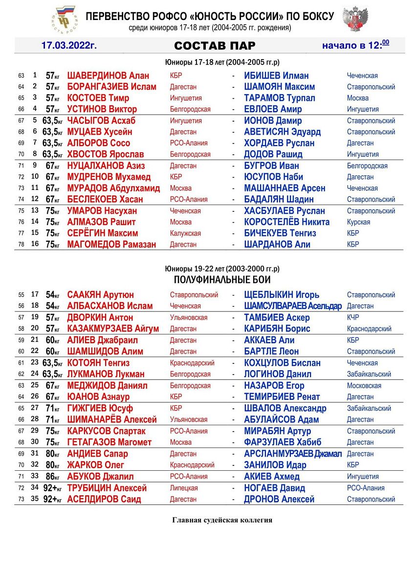 Главная / Архив новостей / Первенство РОФСО "Юность России" по боксу среди юниоров 19-22 года и 17-18 лет. Суворовская. День 4