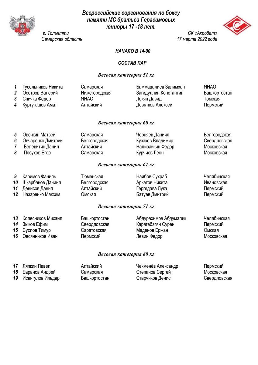 ВС по боксу среди юниоров 17-18 лет памяти мастеров спорта СССР братьев Герасимовых. Тольятти. День 3