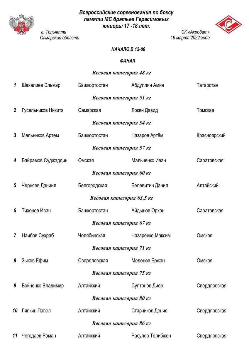 ВС по боксу среди юниоров 17-18 лет памяти мастеров спорта СССР братьев Герасимовых. Тольятти. ФИНАЛЫ
