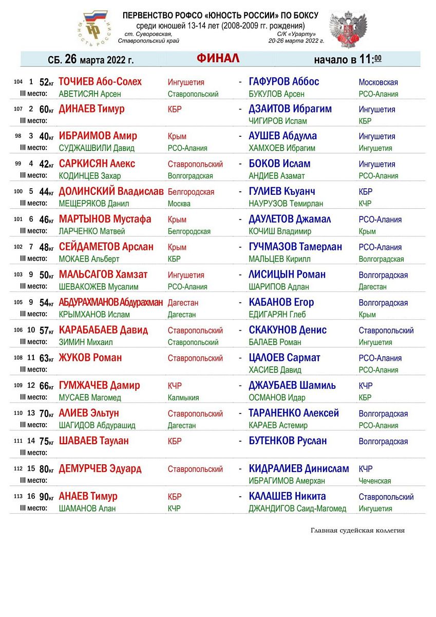 Главная / Архив новостей / Первенство РОФСО "Юность России" по боксу среди юношей 13-14 лет. Суворовская. ФИНАЛЫ