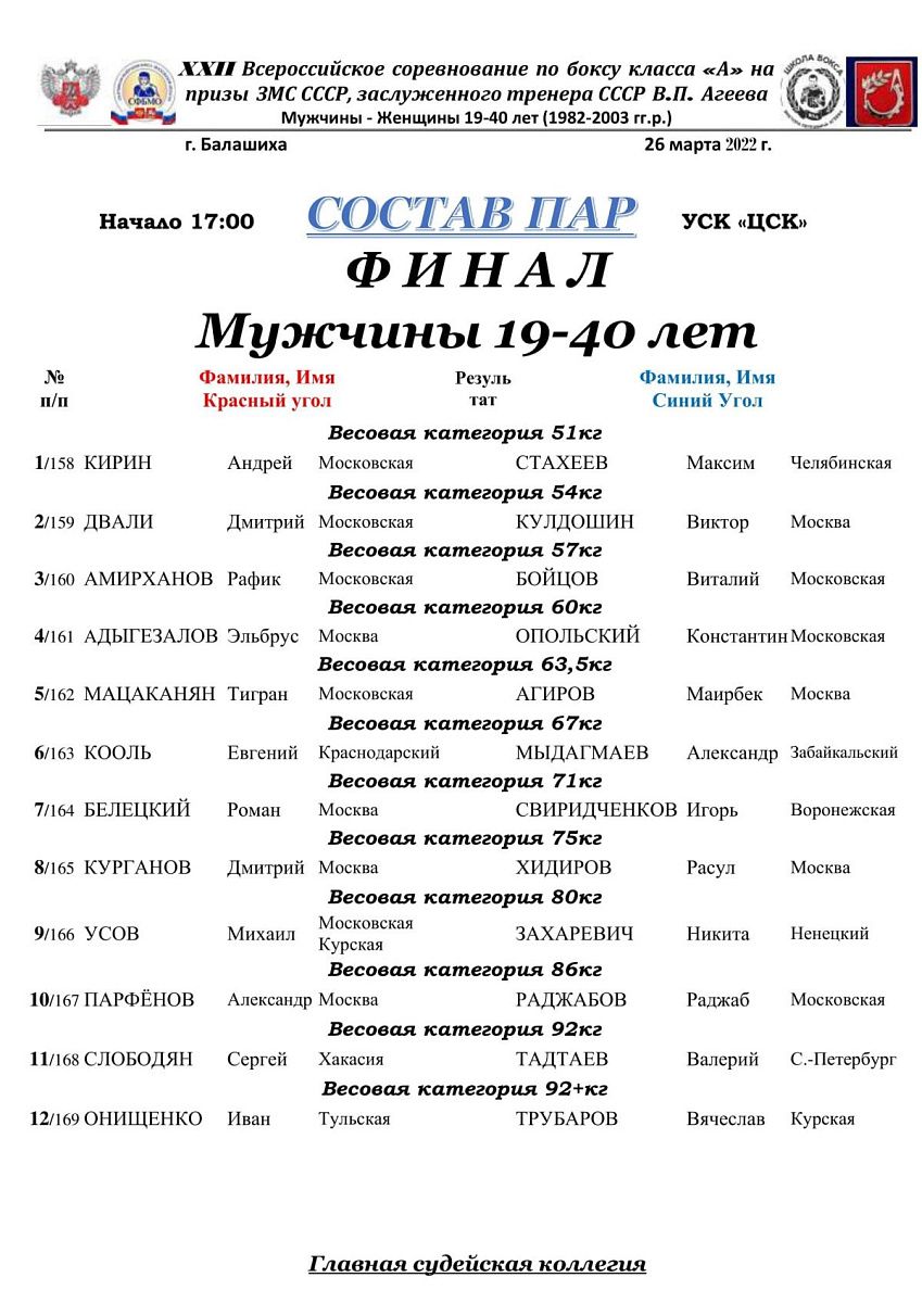 ХХII ВС по боксу на призы ЗМС СССР, заслуженного тренера СССР В. П. Агеева. Балашиха. ФИНАЛЫ