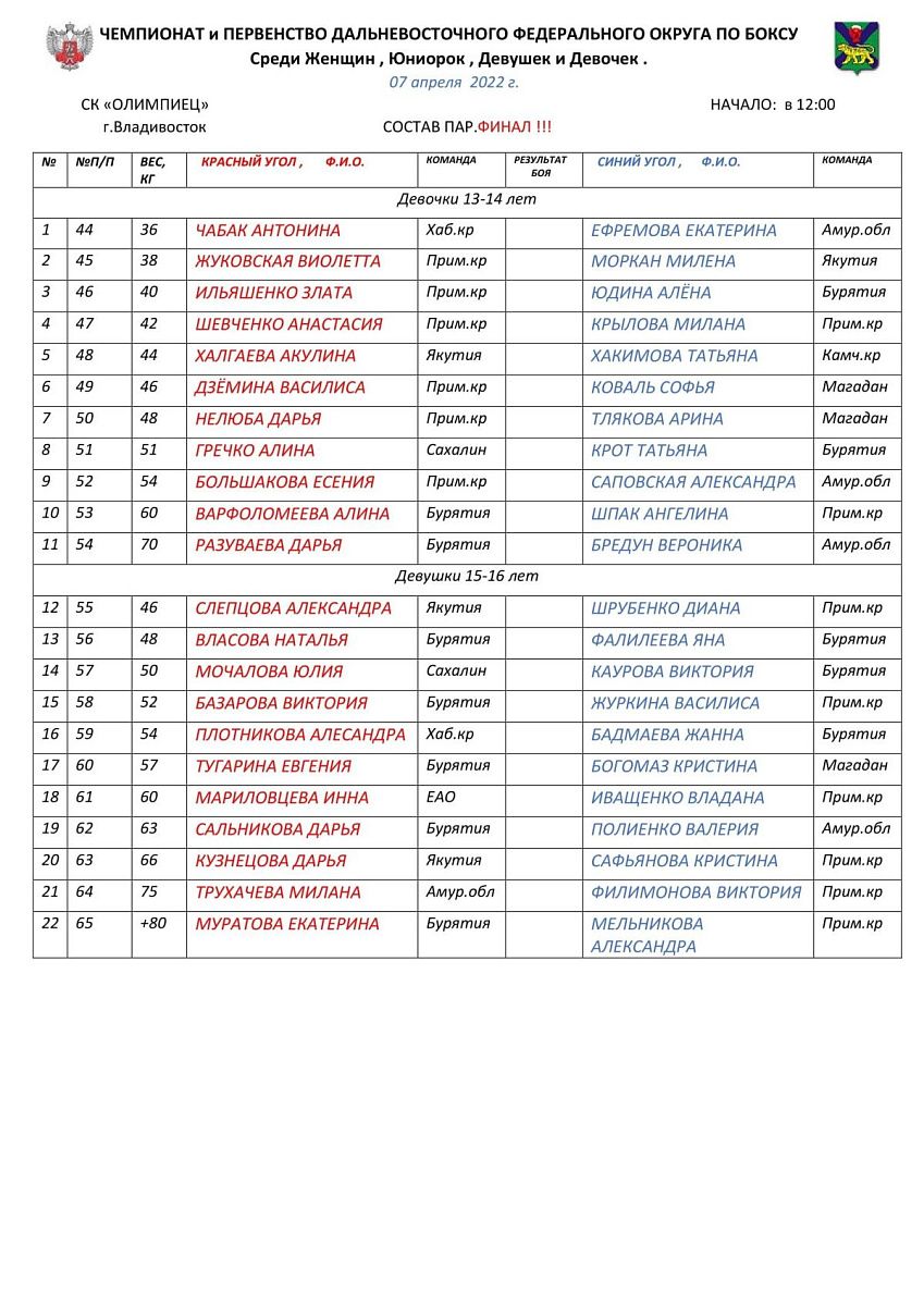 Главная / Архив новостей / Чемпионат и первенство ДФО по боксу среди женщин 19-40 лет, юниорок 17-18 лет, девушек 15-16 лет и девочек 13-14 лет. Владивосток. День 4