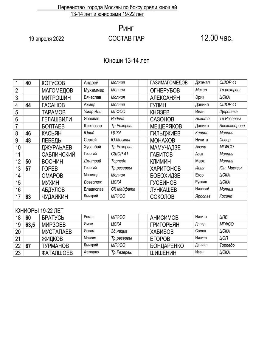Первенство Москвы по боксу среди юниоров 19-22 лет и юношей 13-14 лет. День 1