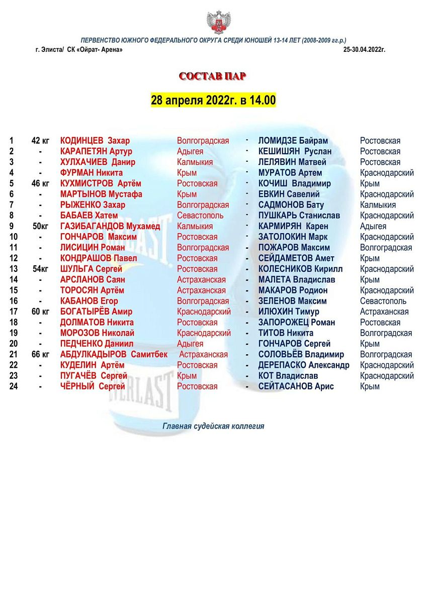 Главная / Архив новостей / Первенство ЮФО по боксу среди юношей 13-14 лет на призы ЗМС России Р.Х. Малахбекова. Элиста. День 3
