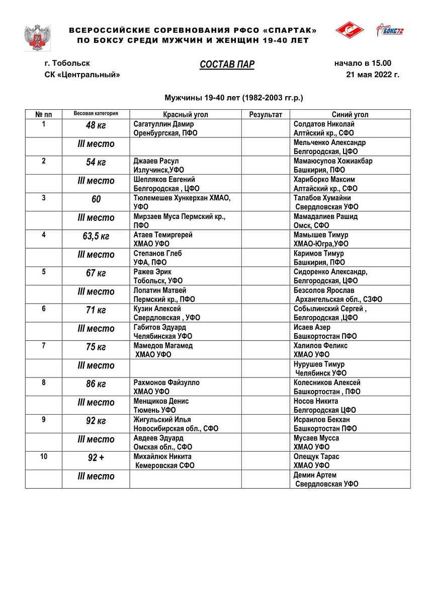 ВС РФСО "Спартака" по боксу среди мужчин и женщин 19-40 лет. Тобольск. ФИНАЛЫ