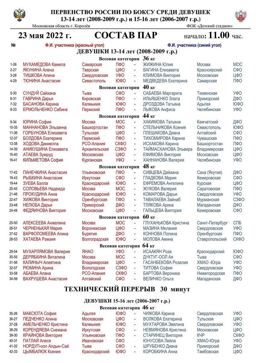 Первенство России по боксу среди девушек 13-14 и 15-16 лет. Королёв. День 2