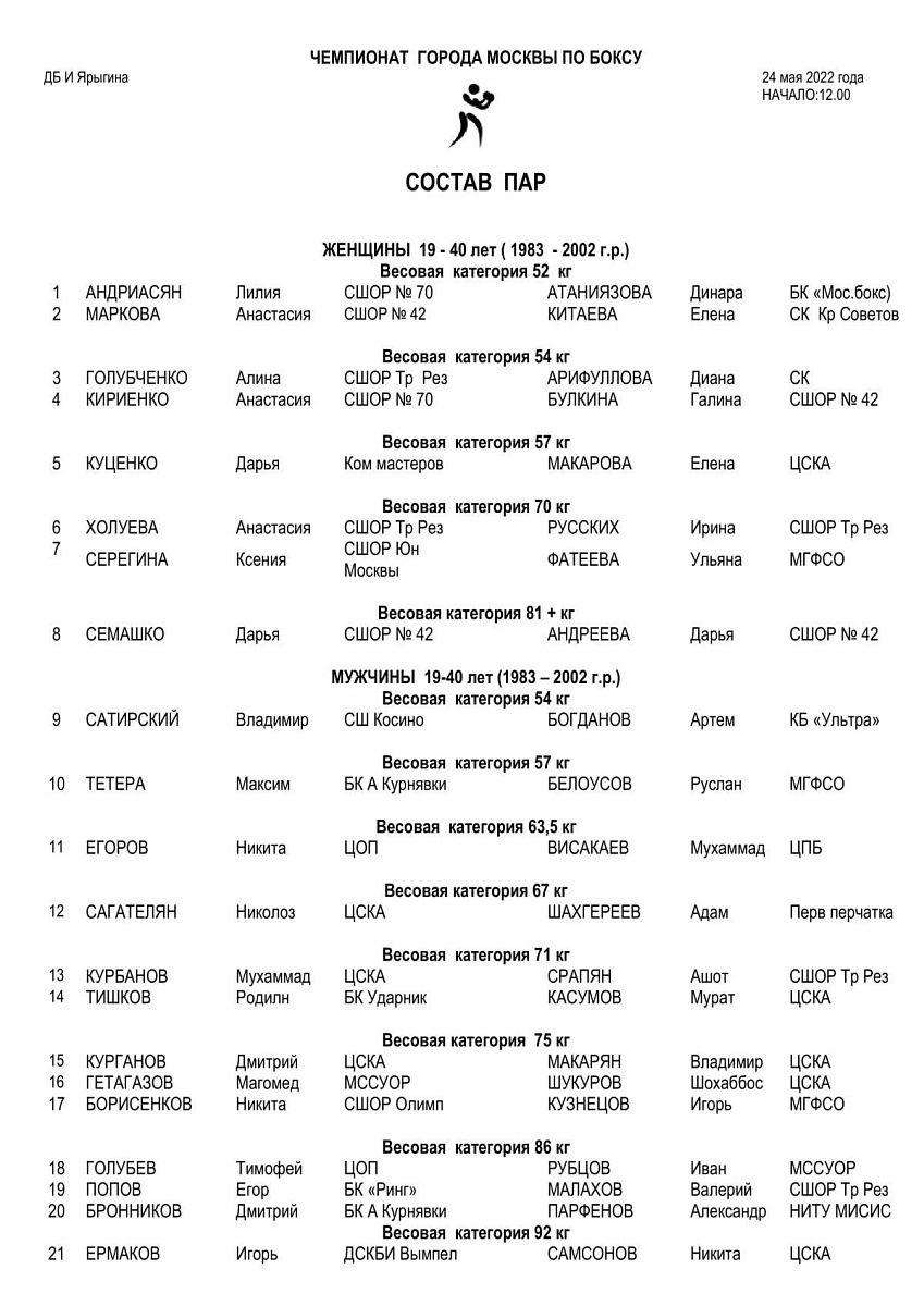 Чемпионат Москвы по боксу среди мужчин и женщин 19-40. День 1