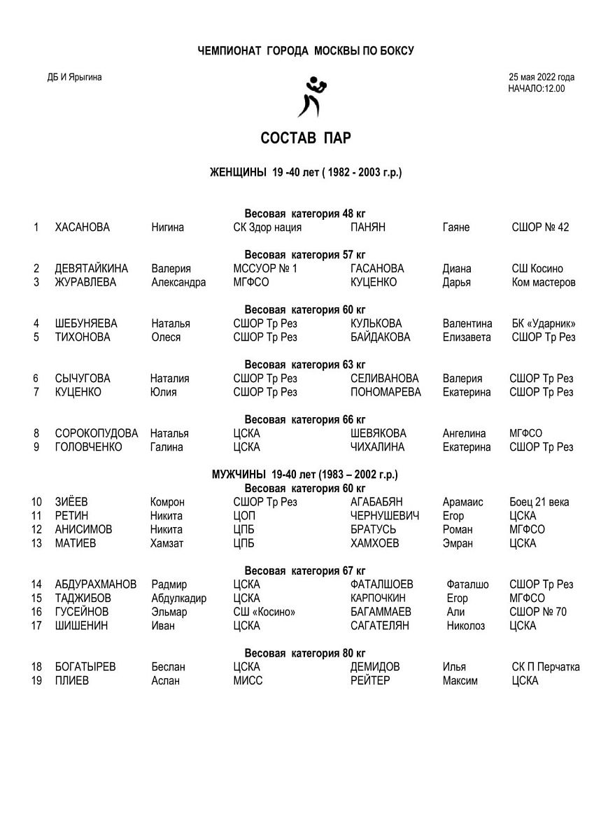 Чемпионат Москвы по боксу среди мужчин и женщин 19-40. День 2