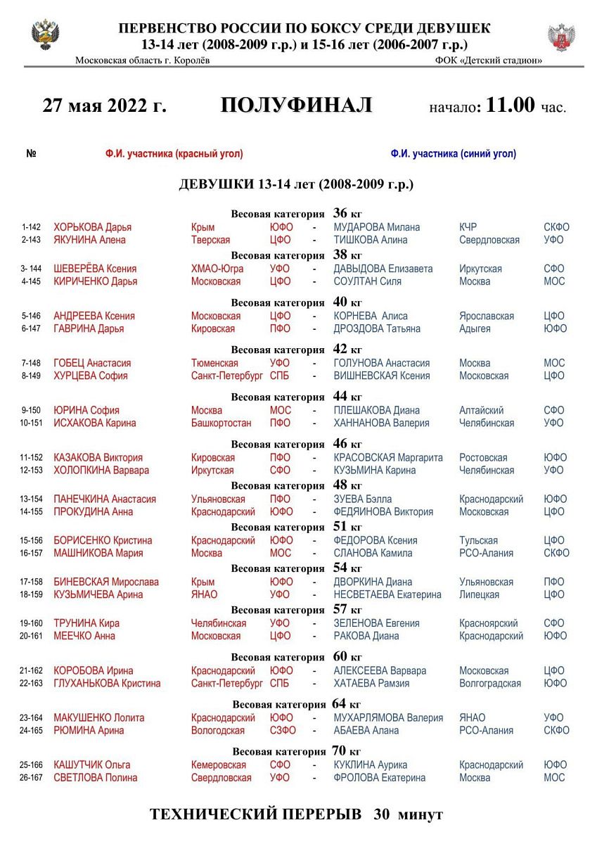 Первенство России по боксу среди девушек 13-14 и 15-16 лет. Королёв. ПОЛУФИНАЛЫ