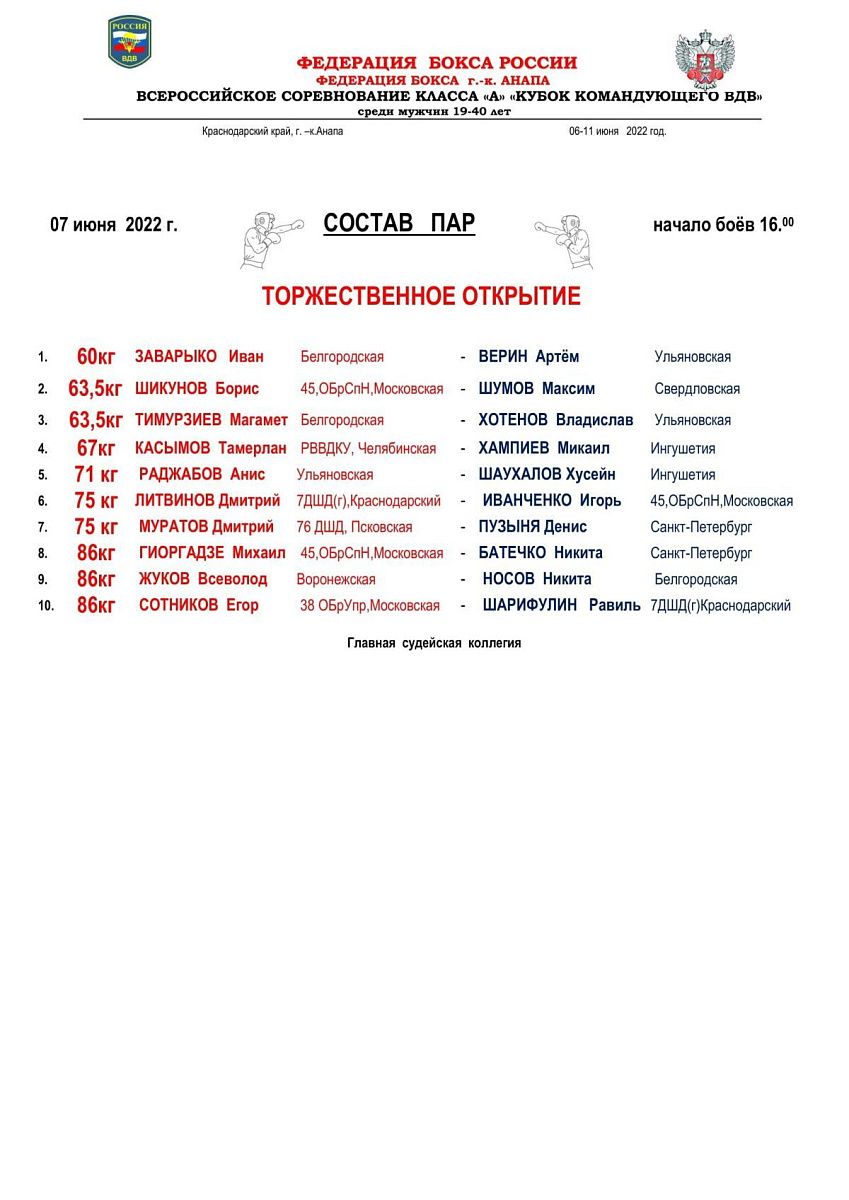 Главная / Архив новостей / ВС по боксу класса "А" Кубок Командующего Воздушно-десантными войсками. Анапа. День 1
