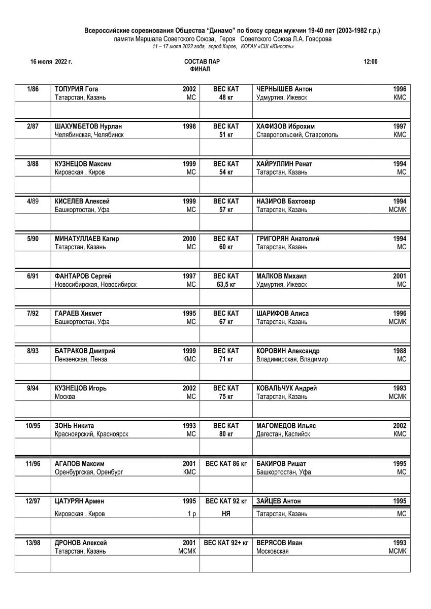 ВС общества "Динамо" по боксу среди мужчин 19-40 лет. Киров. ФИНАЛЫ